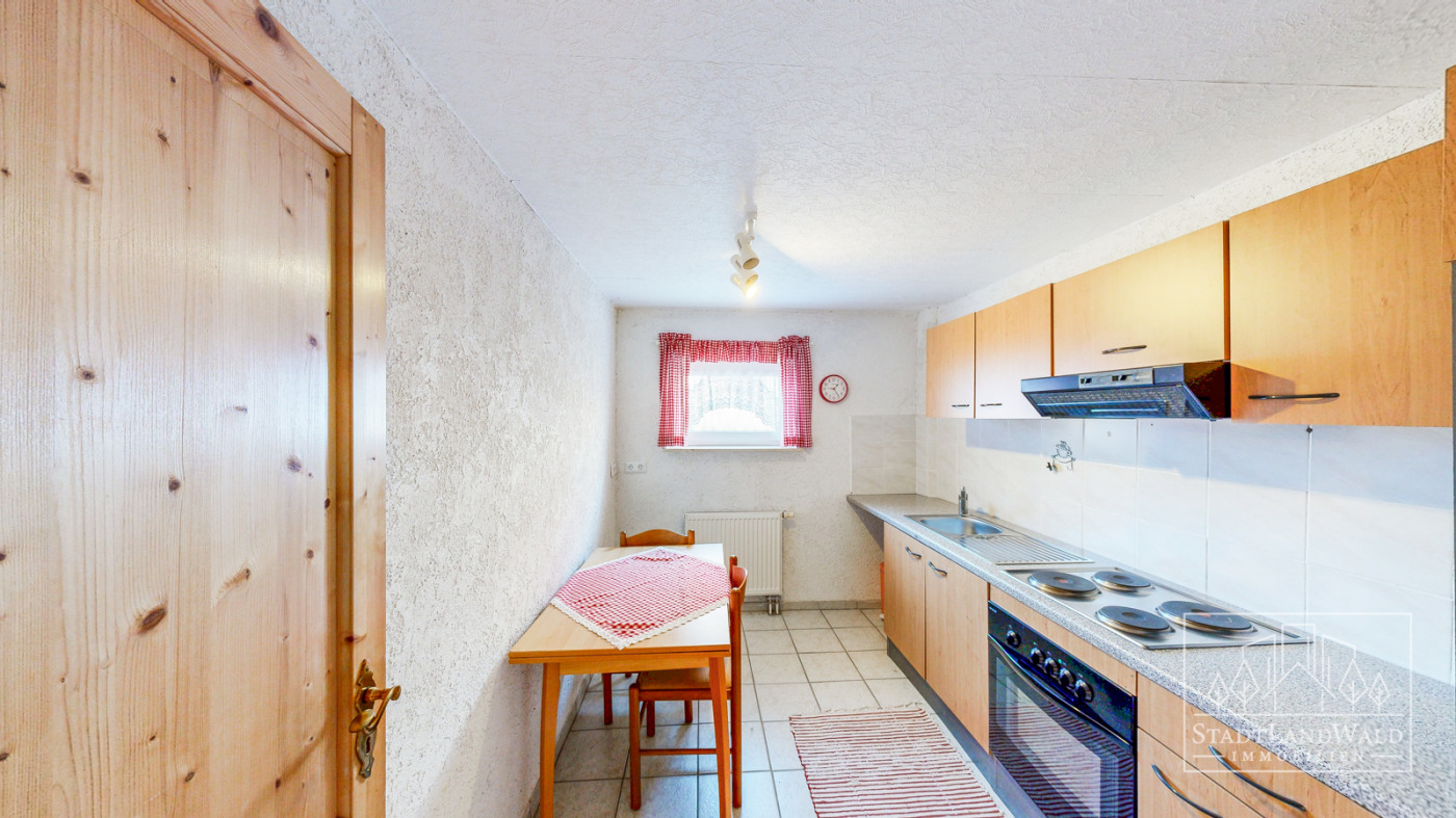 Einliegerwohnung: Wohnzimmer | Schlafzimmer | innenliegendes Bad mit Eckdusche, WC und Waschbecken | Küche (im Kaufpreis inklusive).