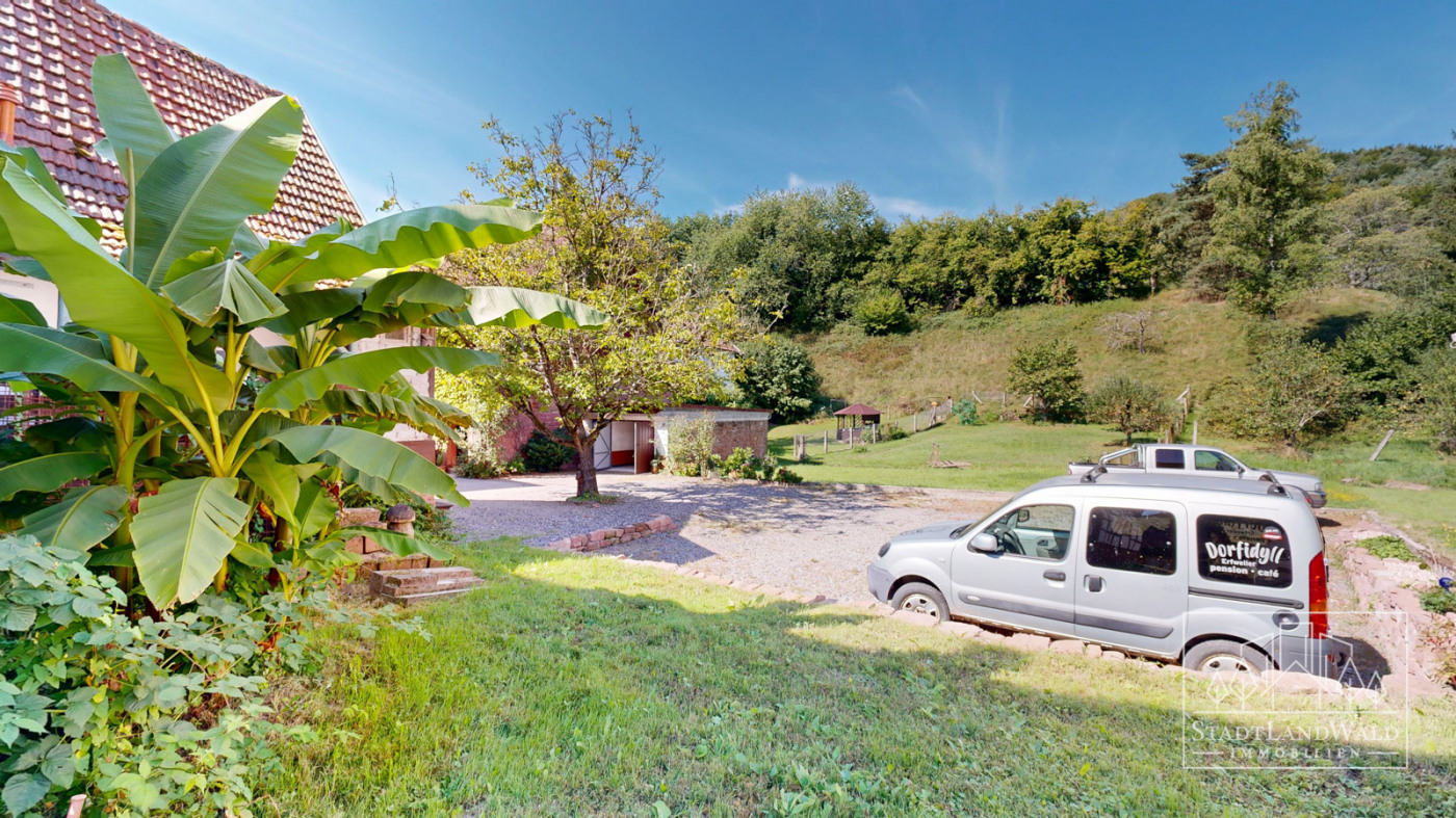 Ein Ort mit Seele und Geschichte – willkommen in ERFWEILER, mitten im malerischen Dahner Felsenland. Dieses einzigartige Anwesen vereint das Beste aus Leben, Arbeiten und Vermieten: eine charmante Pension mit aktivem Gewerberecht und betriebsbereitem Gastronomiebereich, liebevoll eingerichteten Ferienwohnungen, ein vermietetes Fachwerkhaus als sichere Einnahmequelle, eine eindrucksvolle Scheune aus Sandstein – und all das eingebettet in einen idyllischen Garten mit Bachlauf. Ob als Lebensmittelpunkt, Gastbetrieb oder Investition: Hier treffen Charakter, Lage und Potenzial aufeinander.