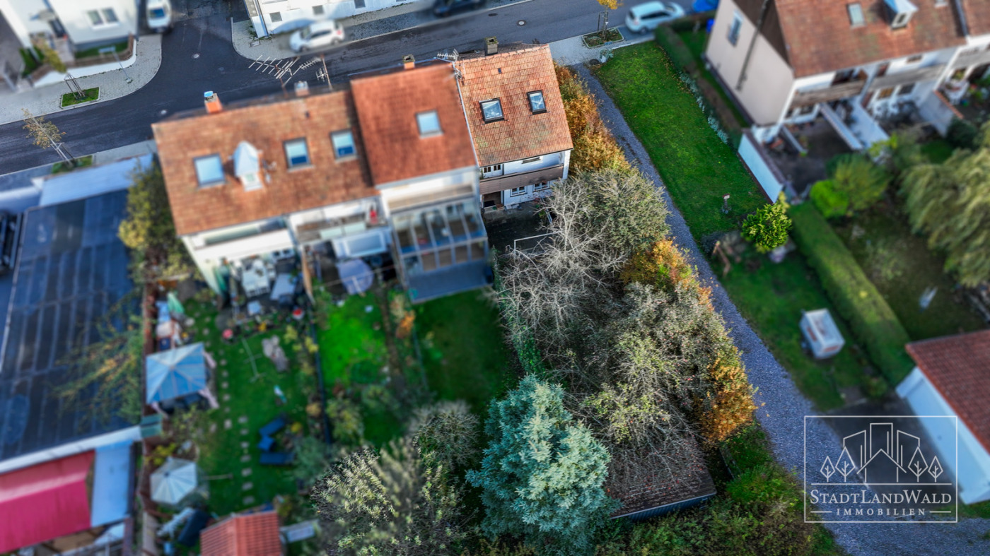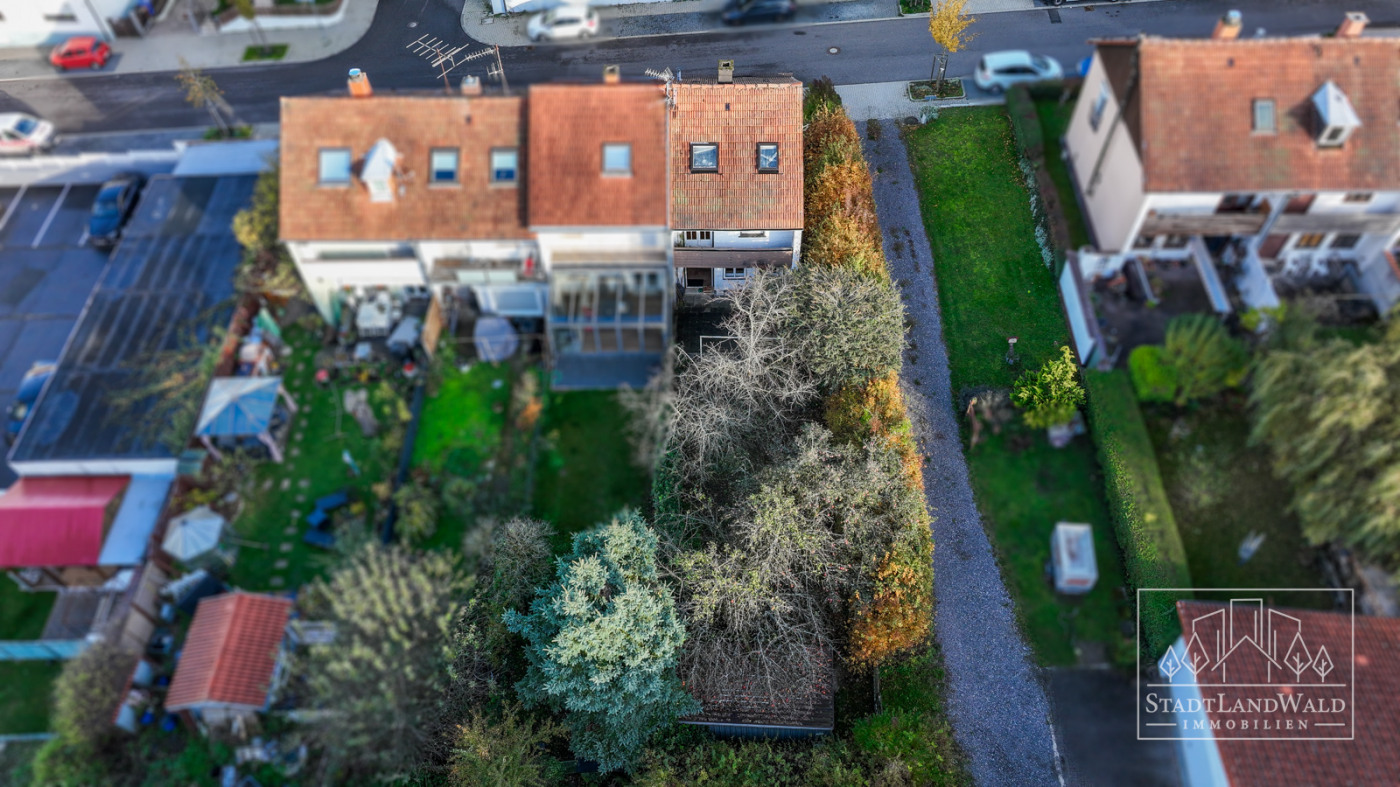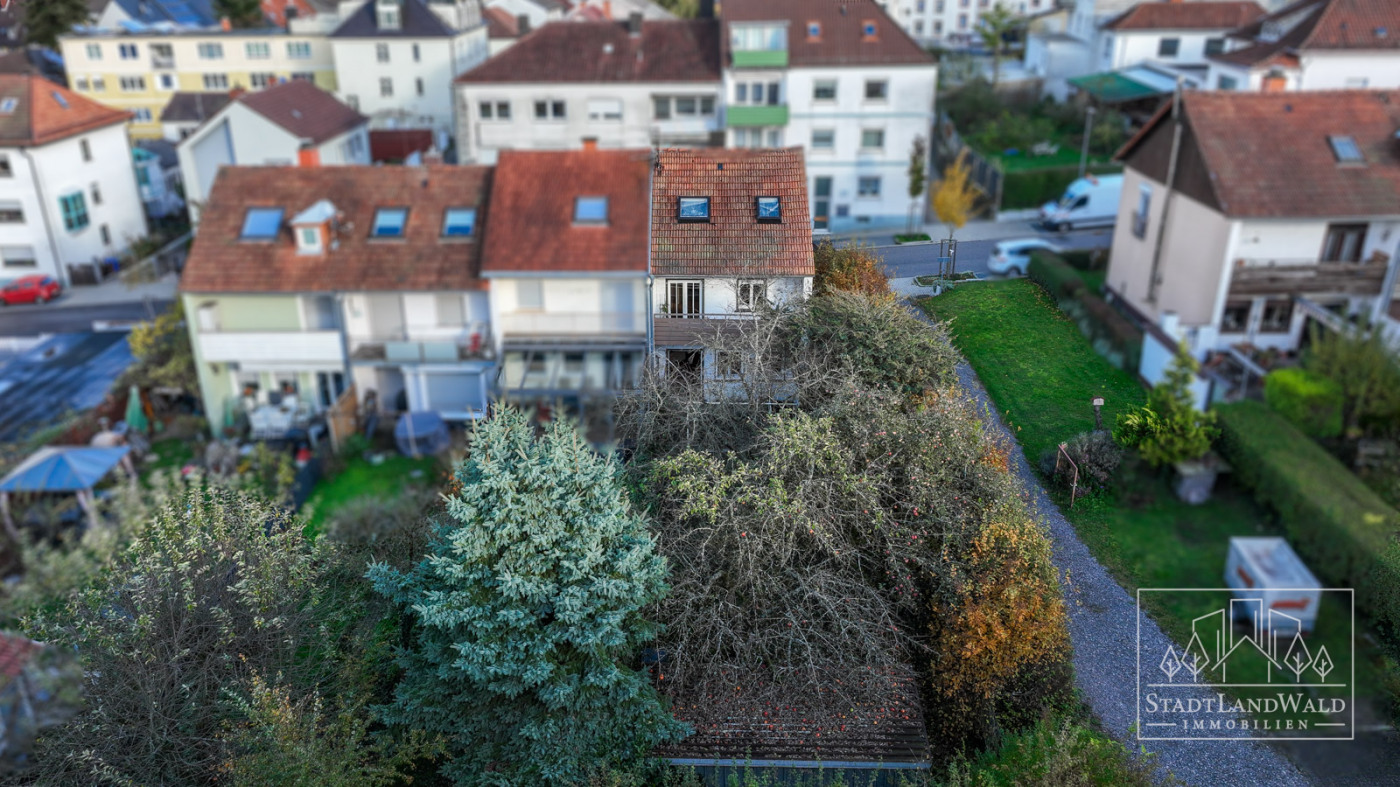 Das pflegeleichte kompakte GRUNDSTÜCK mit insgesamt 286m² (Flurstück: 3332/8) bietet neben einem Vorgarten und einer Terrasse auch einen geschützten Gartenbereich mit Hecken und altem Obstbaumbestand – ideal für ruhige Stunden im Grünen mitten in der Stadt. Eine freistehende Garage, die über den Garten oder einen Seitenweg zugänglich ist, erweitert das praktische Nutzungsspektrum.