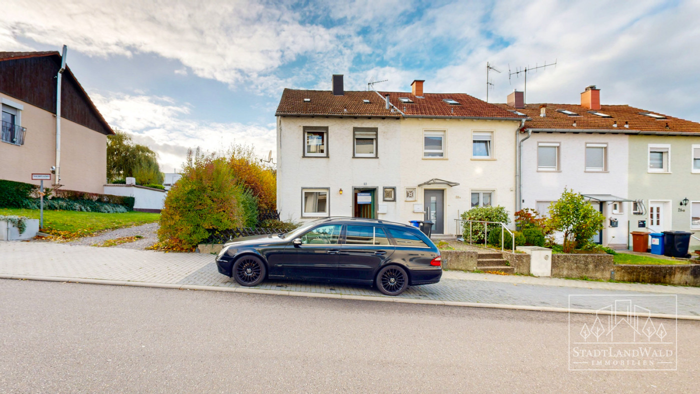 Reihenendhaus | 3-ZKB | 4 Etagen (UG/EG/OG/DG) | ca. 152m² Wohn- und Nutzfläche | ca. 82m² Wohnfläche | ca. 70m² Nutzfläche (UG/DG) | Grundstück 286m² | Baujahr 1953 | Balkon | Terrasse | Garten mit Obstbäumen | freistehende Garage über Garten erreichbar | gute Wohnlage in Pirmasens