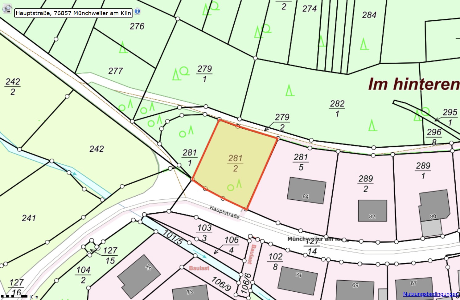 Die Gemeinde stellt in Aussicht, dass auch das benachbarte Flurstück 281/1 mit rund 330 m² Fläche zusätzlich erworben werden kann. Bei Interesse an einer Grundstückserweiterung empfehlen wir eine direkte Kontaktaufnahme mit der Gemeinde.