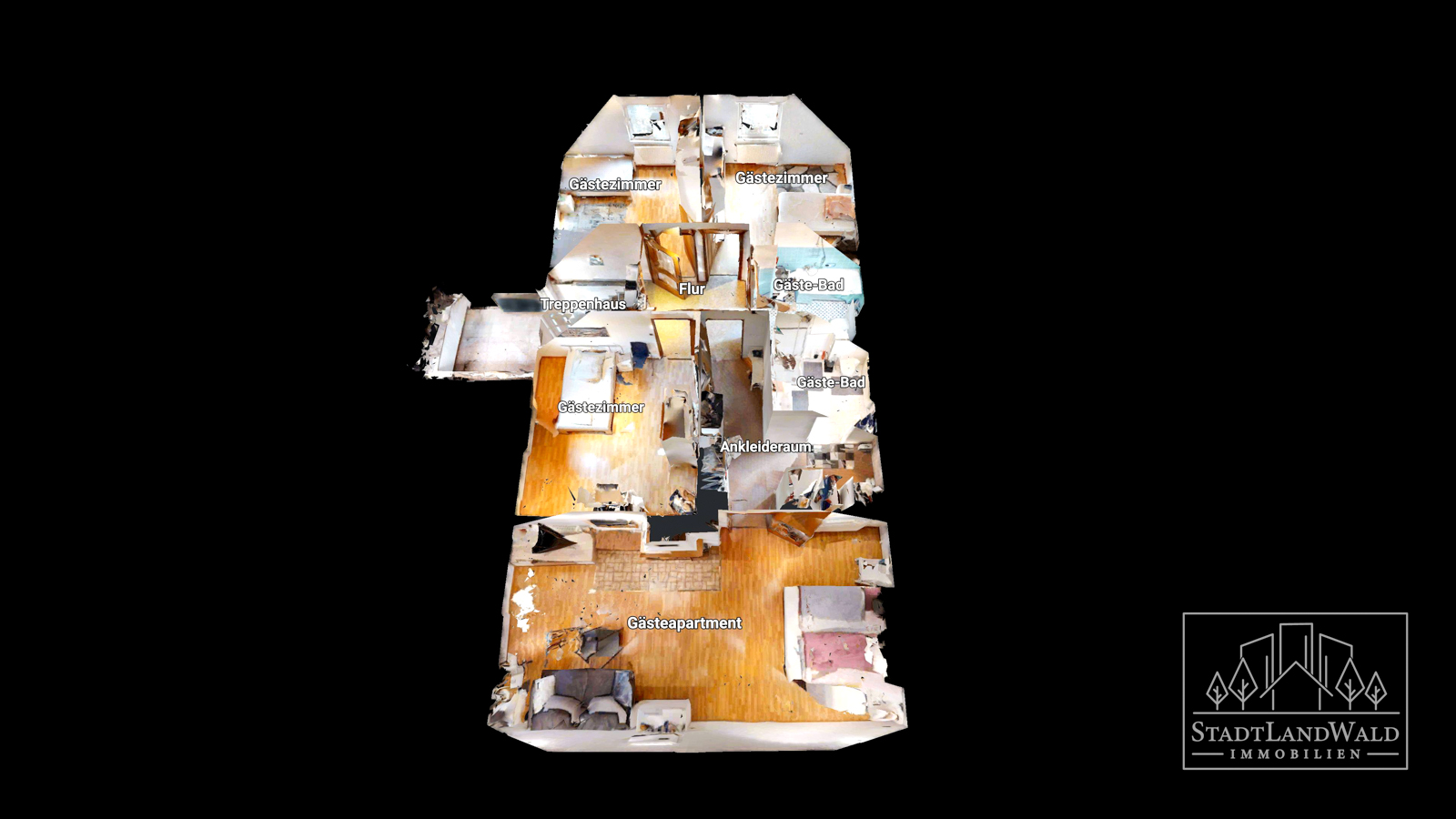 Eingang Gäste | Treppe | Flur | 3 Gästezimmer | 2 Bäder | Ankleideraum | Gästeapartment