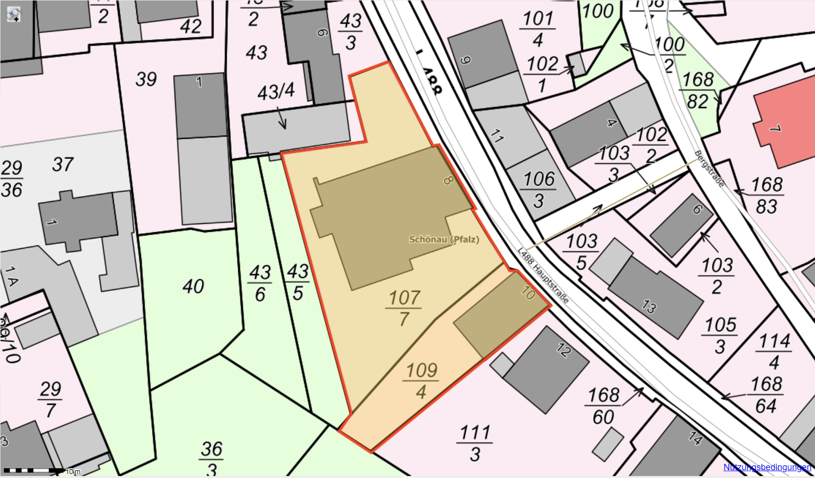 Das Ensemble verteilt sich auf insgesamt ca. 1.680 m² Grundstücksfläche (Flurstücke 107/7, 104/9 und 106/3).