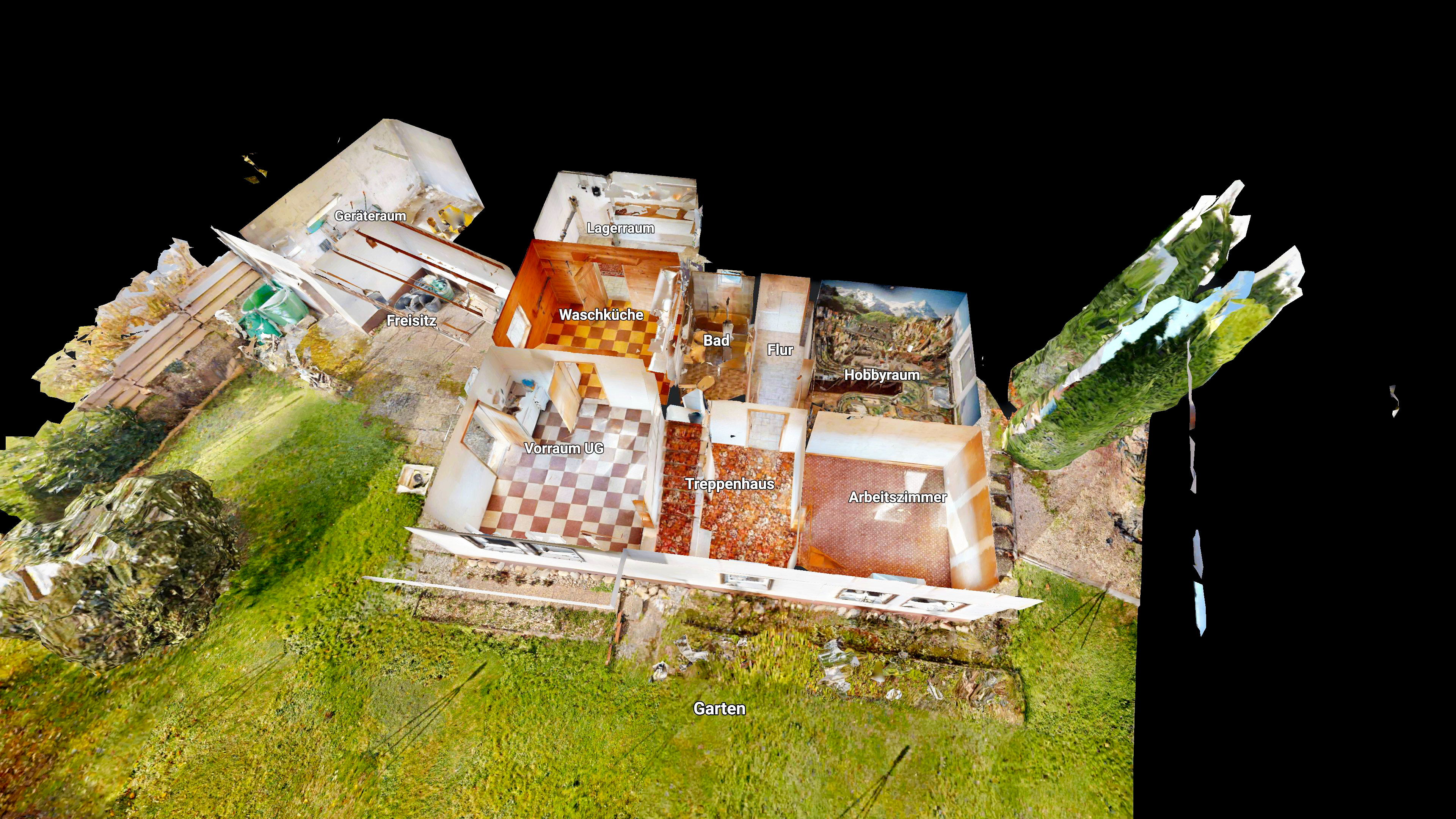 Arbeitszimmer | Hobbyraum | Vorraum | Waschküche | Lagerraum | Duschbad mit Waschtisch & WC | Treppenhaus mit Zugang zum EG | Zugang zum Garten | integrierte Garage